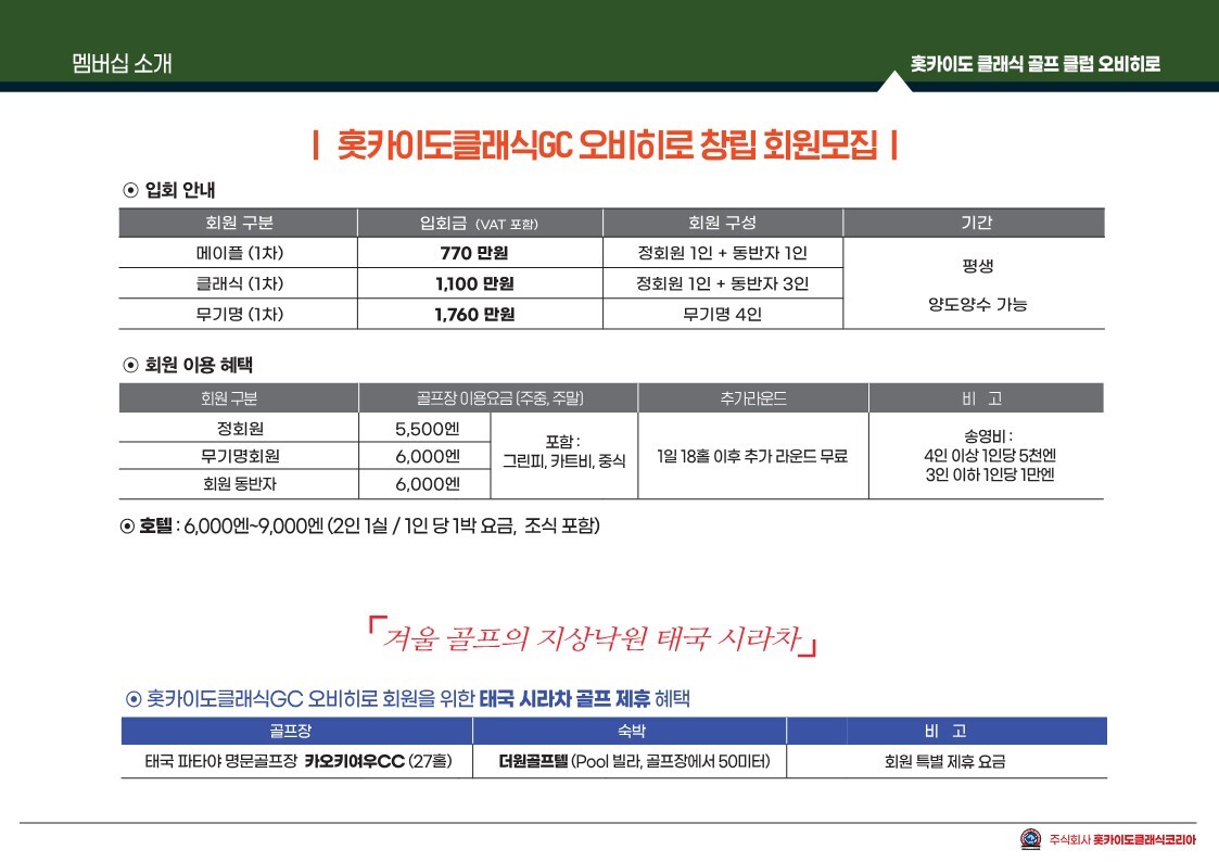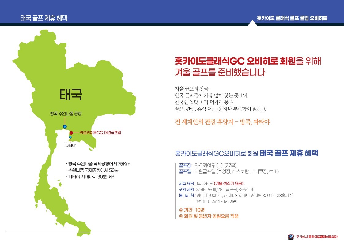 ⊙ 홋카이도클래식GC 오비히로 회원을 위한 태국 시라차 골프 제휴 혜택